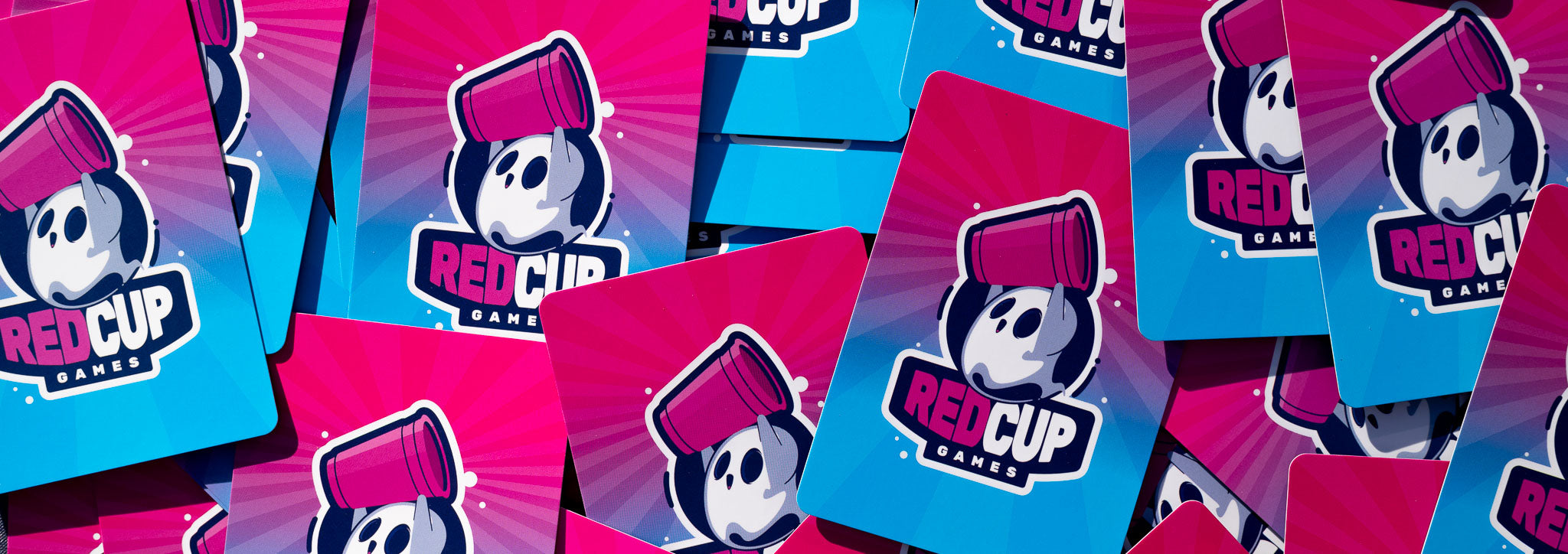 All players begin the round with a cheers of their cup. At the end of the cheers, all players repeatedly flip their cups as quickly and accurately as possible. Each time a player lands their cup upside down, the player moves the shot glass one space toward the player opposite of them. Note: The shot glass never moves diagonally. Once a player lands enough flips, the shot glass will be pushed into an opposing player’s colored end zone. The losing player then draws a “Drink or Challenge” card. Challenges apply to the next round of game play.